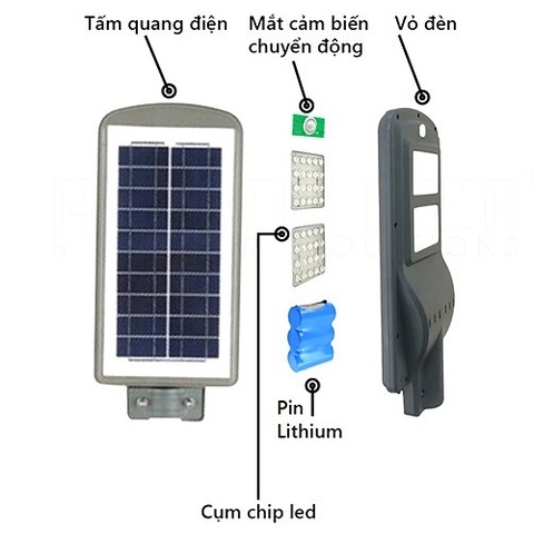 Hiểu một cách đơn giản, sản phẩm là loại đèn liền pin. Tất cả các bộ phận gắn kết với nhau và tạo thành một thể thống nhất. Cấu tạo của nó bao gồm : bóng đèn, nguồn LED, tấm panel, bình dự trữ năng lượng/pin sạc, các loại cảm biến, dây dẫn, cột trụ.