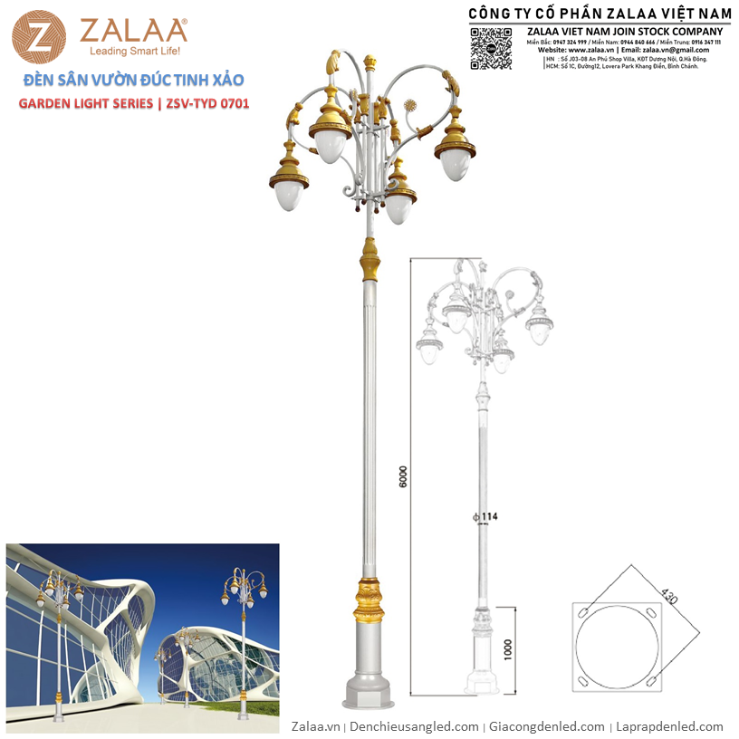 Liên hệ ngay với ZALAA Lighting để được tư vấn, nhận báo giá cột đèn cảnh quan đúc tinh xảo ZSV_TYD-0701 và giải pháp chiếu sáng cảnh quan cho từng dự án, công trình của bạn!