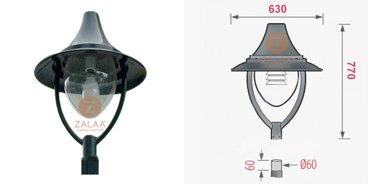 - Thân cột bằng nhôm đùn áp lực anot hóa hoặc thép kẻ H2300mm
