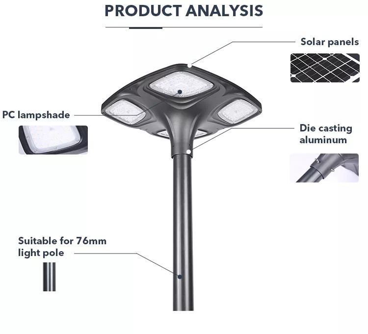 ZG-GGD0805 là mẫu đầu Đèn trang trí hiện đại sử dụng năng lượng mặt trời để chiếu sáng cảnh quan sân vườn, đường dẫn vào các khu căn hộ chung cư, nhà ở, homestay, khách sạn, nhà nghỉ cao cấp, villages, biệt thự,… Sản phẩm sử dụng Chip LED 2835, Pin LiFePO4 3.2V, Tấm pin 5V/32W ứng với kích thước đầu đèn 56*56*H23cm. (bộ đèn chưa bao gồm cột kèm theo)