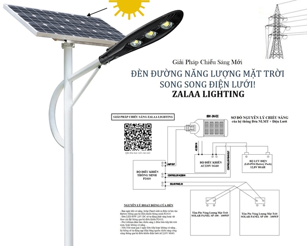 Hôm nay, ZALAA Lighting cung cấp bộ sản phẩm đèn đường năng lượng mặt trời mắc song song điện lưới. Một giải pháp chiếu sáng tối ưu mang tính ổn định dài lâu.