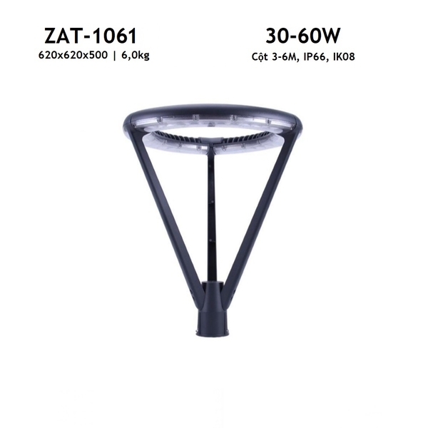 Đèn LED Chiếu Sáng Cảnh Quan Công Viên ZAT-1060 Phù Hợp Cột Từ 3-6M với Công suất Từ 30W đến 60W