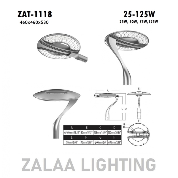 Đèn LED Chiếu Sáng Cảnh Quan Công Viên ZAT-1118 Phù Hợp Cột Từ 3-6M với Công suất Từ 25W đến 125W
