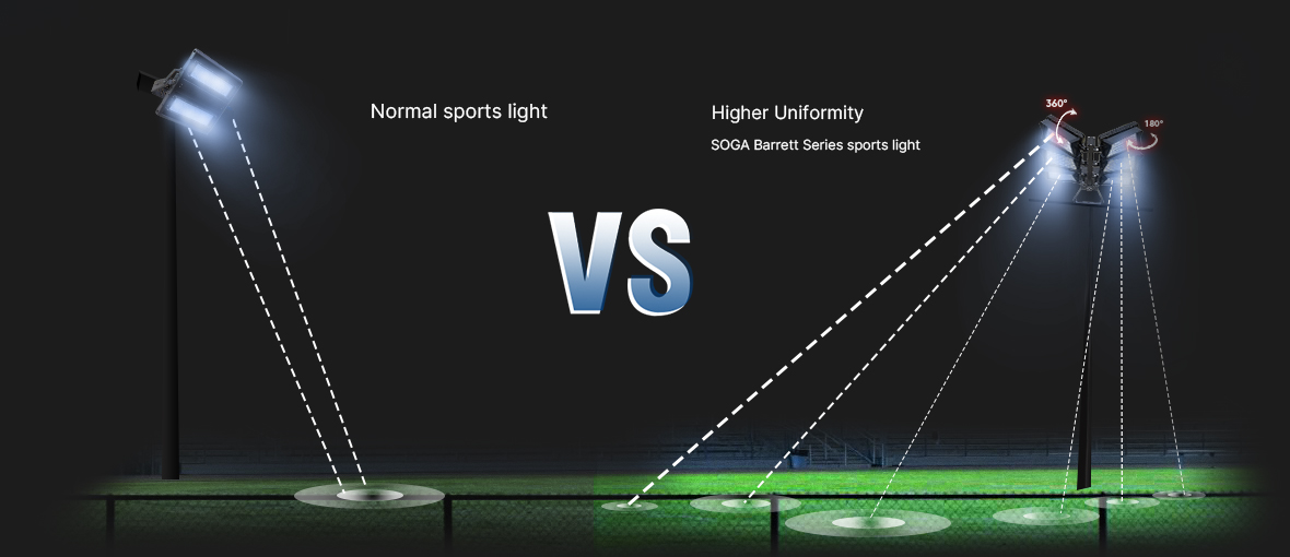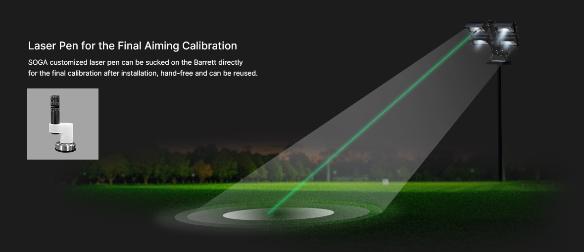 Thiết kế bằng sáng chế SOGA lấy cảm hứng từ súng trường Barrett. Tương tự như súng trường, ngắm chính xác là tính năng nổi bật nhất của đèn thể thao ZALAA/SOGA Barrett Series, và cũng có các tính năng cạnh tranh khác như bên dưới: