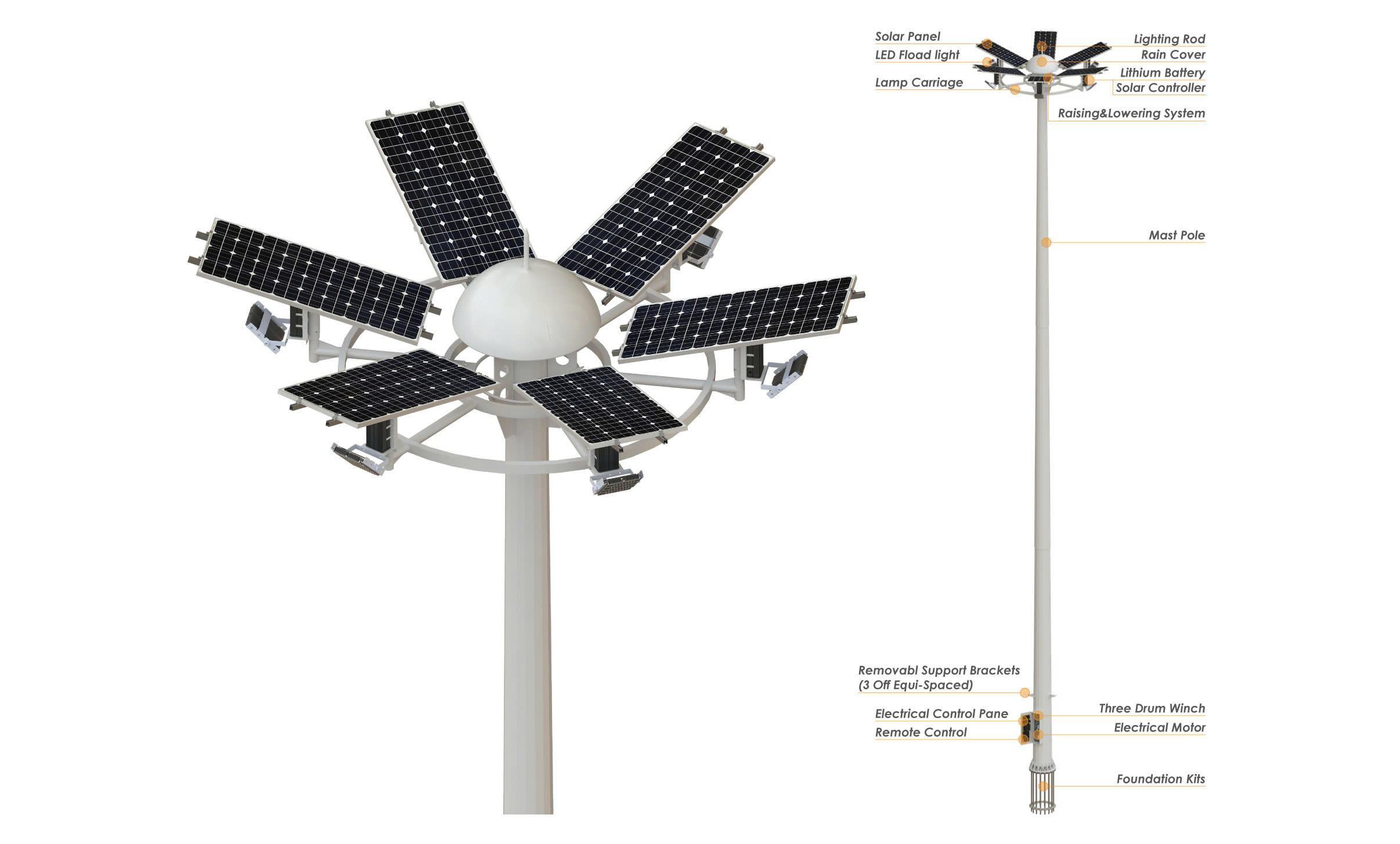 Cột Đèn Năng Lượng Mặt Trời Nâng Hạ Cao Từ 20 - 30m | Giải Pháp Hiện Đại Từ ZALAA