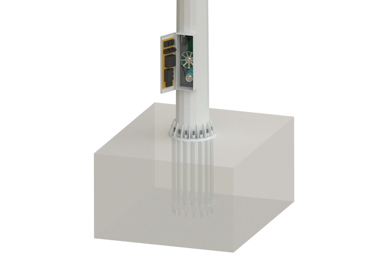 - Hệ thống nâng cấp tự động : Sử dụng remote không dây hoặc bảng điều khiển cố định , giúp dễ dàng hạ cụm đèn xuống để bảo trì mà không cần phải có giàn giáo hay xe nâng.