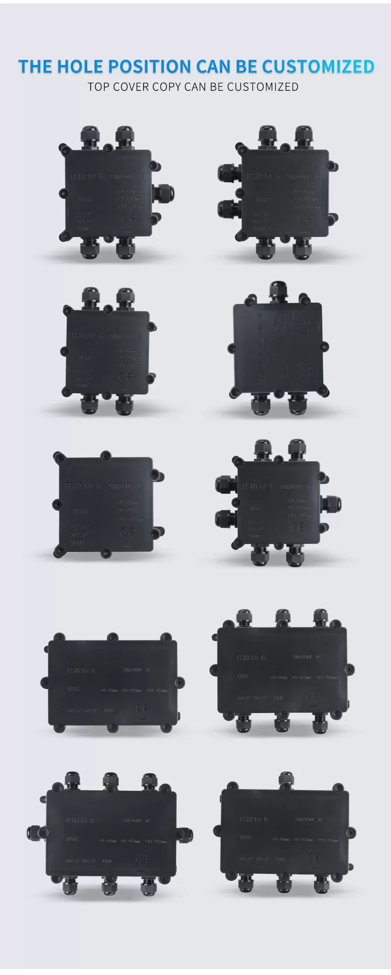 Hộp nối IP68 chống thấm nước, 2, 3, 4, 5, 6 cổng